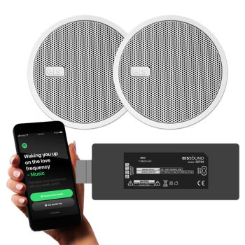 - In Ceiling speaker kit – These kits are created to be invisible and consist of ceiling speakers of your chosen size & a receiving module which is hidden in your ceiling behind one of the speakers. Your system can be controlled by your phone, a remote control or Amazon Alexa, depending on which kit you decide to go for.